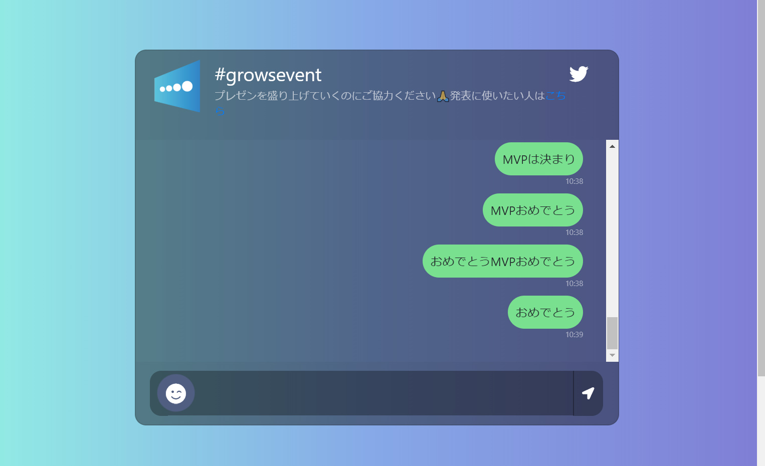 PC上でもOKですし、Twitterとも連動しています。QRコードを伝えればスマートフォンからも投稿可能です。