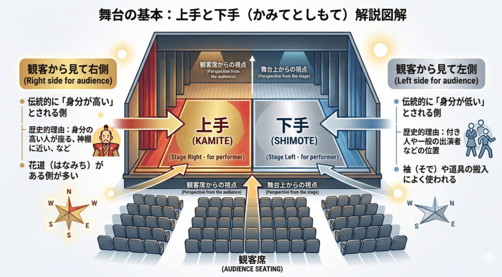 現場で意外と多いのが、「上手と下手、どっちがどっち?」という戸惑いです。