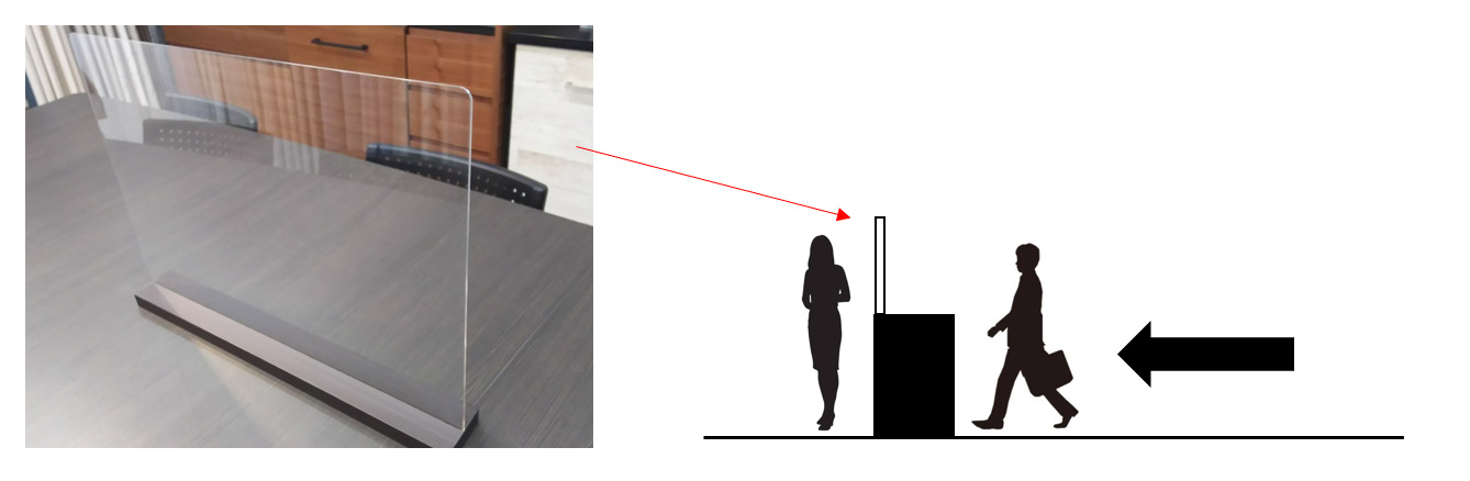 ビニールシートですとあまり見た目も良くないので、こういったアクリルパネルを設置することも可能です。