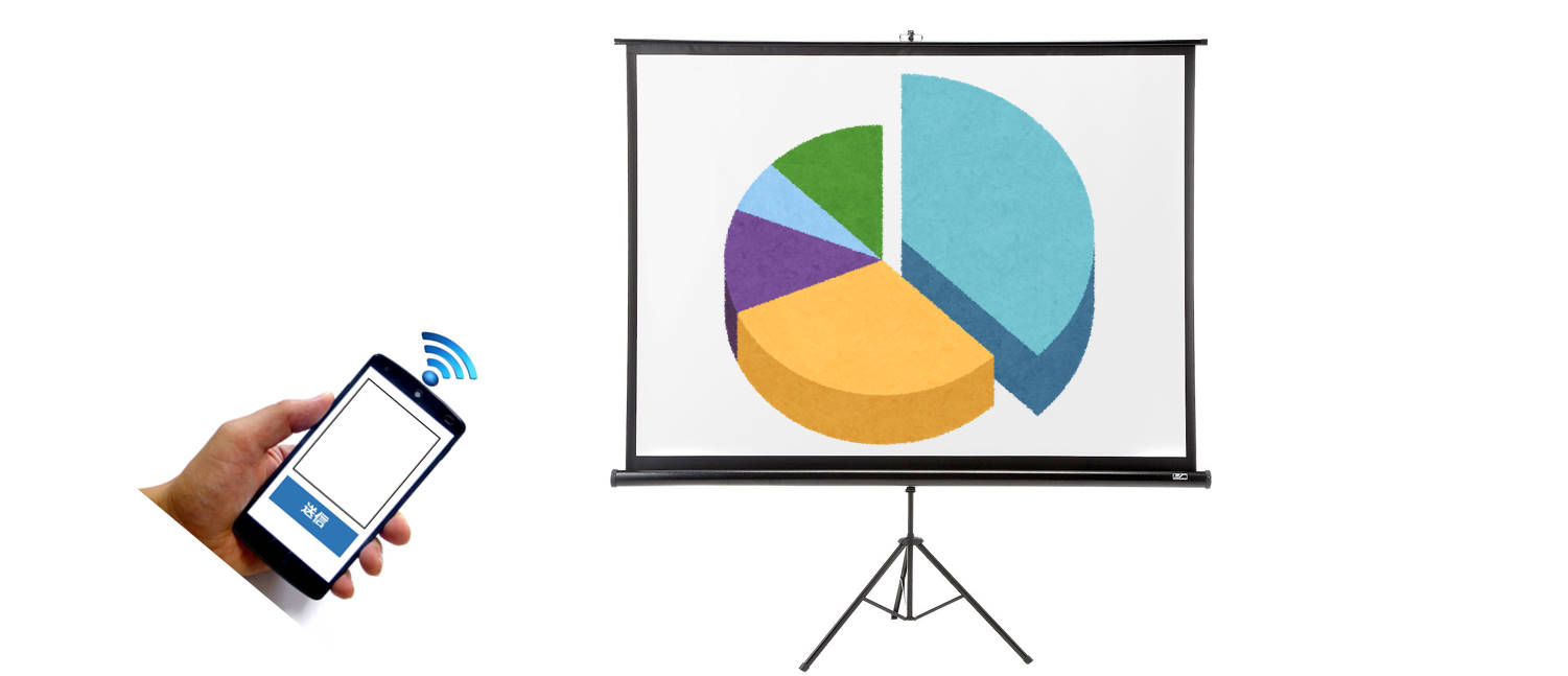 その回答結果はリアルタイムで数字やグラフとなってスクリーン表示することが可能です、