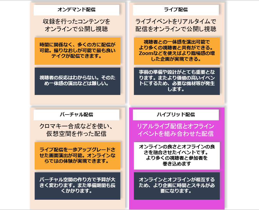今回は、ライブ配信・バーチャル配信に特化してご紹介させていただきます。
