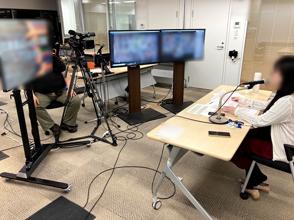 今回の事例では、MCの前にZoomの返しモニターを用意し、社員全員をギャラリービュー表示を行いました。