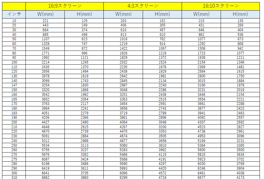 スクリーンには、様々なサイズがあるので、ご紹介します。