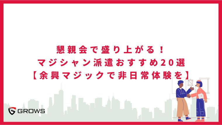 また、初めてマジシャンを依頼する場合は、キャスティング会社に相談するのが安心です。複数のマジシャンの中から、予算や会場条件に合わせて最適な演者を紹介してくれるため、「誰に頼めばいいのかわからない」「会場に合う演出が知りたい」といった悩みを解消できます。特に懇親会の余興を一から企画する総務・人事担当者にとっては、キャスティング会社を活用することで手間を大幅に減らし、クオリティの高いイベントを実現できるでしょう。是非GROWSまでご相談ください!