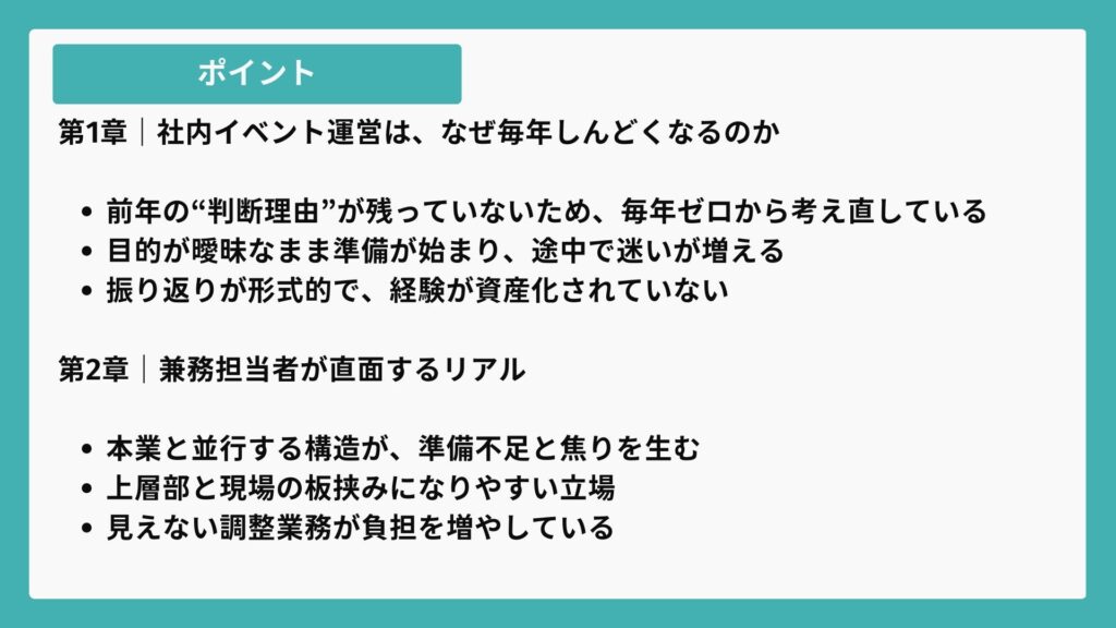 第1章|社内イベント運営は、なぜ毎年しんどくなるのか