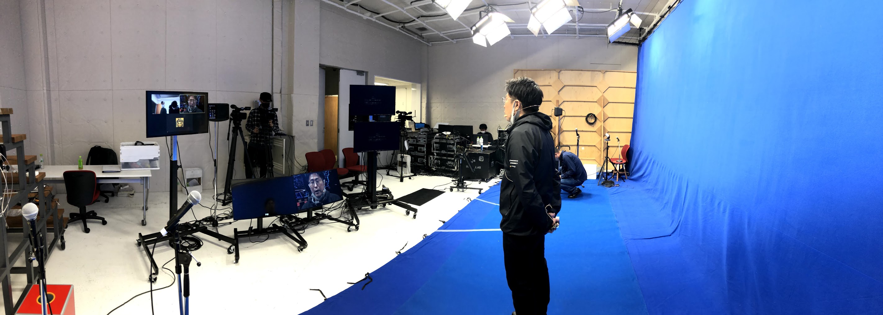 当日は、ブルーバックを敷いた配信スタジオから生ライブ。