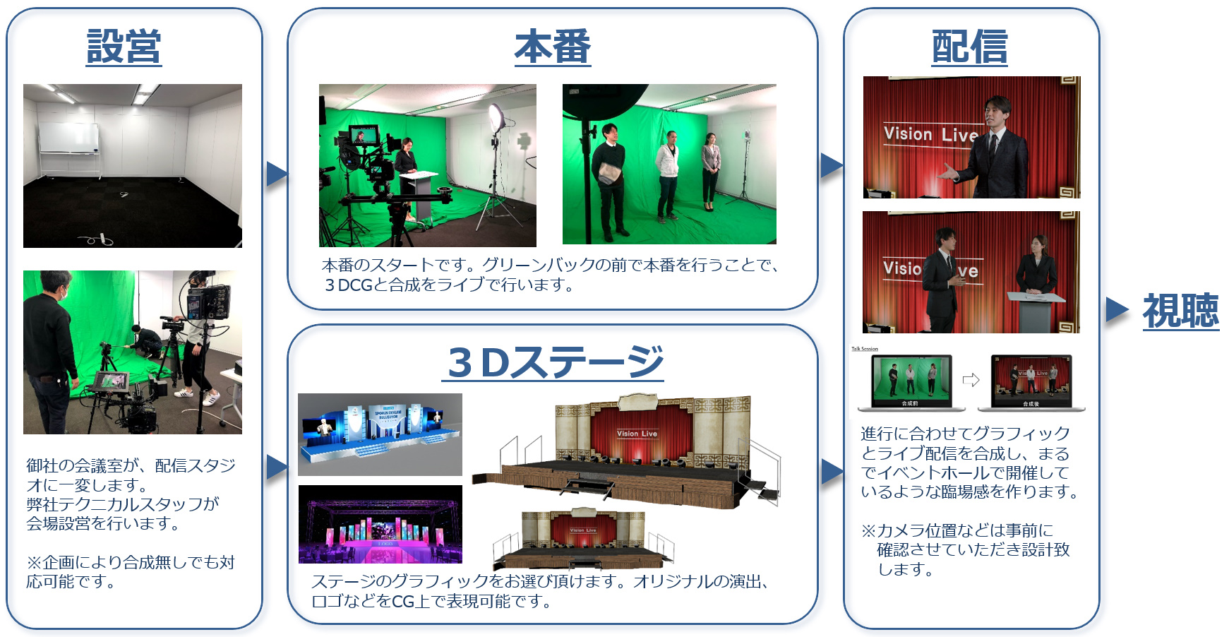 配信会場から、視聴者に届くまでをデザイン致します。