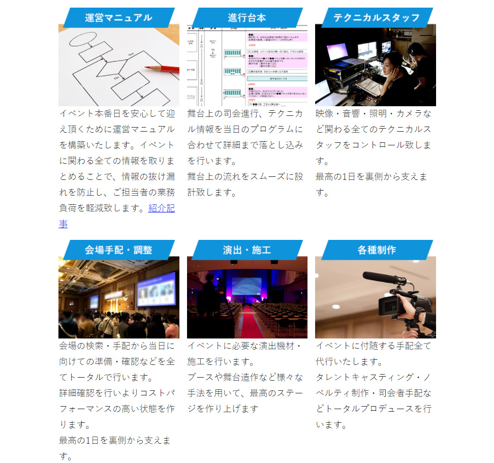 当日のスタッフと情報を共有する運営マニュアルから始まり、進行台本などステージ上の動きを明確化させるツールを制作することで、